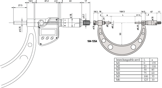 | 104-135A | 0 ~ 150 mm | 0.01mm | 6 rods |