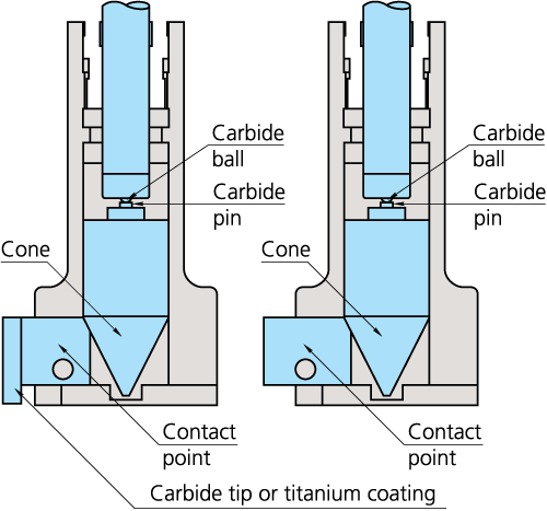 - TiN-coated measuring contact points (over 6mm range models) provide excellent durability and impact resistance and allow the instrument to measure right to the bottom of a blind hole